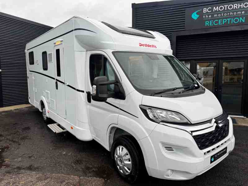 Modern, stylish interior with smart storage solutions Spacious rear double bed with excellent mattress comfort Bright, airy living area with premium materials Practical bathroom layout with separate shower Dethleffs quality craftsmanship throughout