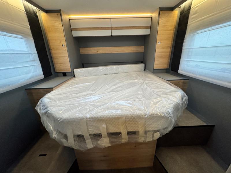 Electric Drop-Down Bed Maximize space without sacrificing comfort. The electric drop-down bed lowers smoothly at the touch of a button, providing a spacious, comfortable sleeping area while allowing generous living space during the day. Perfect for flexible, family-friendly layouts.